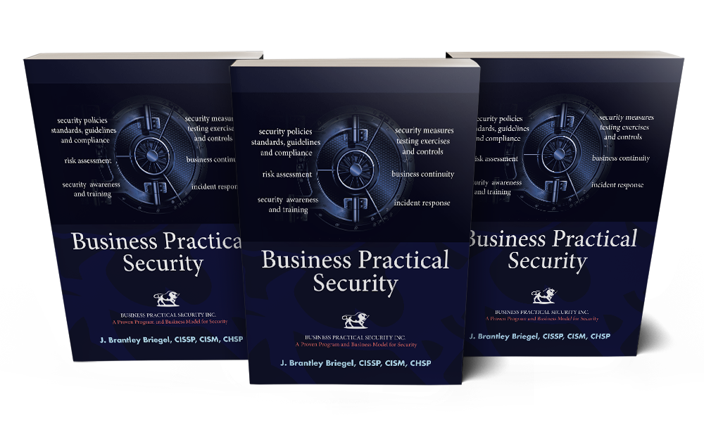 Welcome to the Business Practical Security Publications website. Are you the person or persons responsible for developing, implementing, maintaining, reassessing, or auditing your organization’s security program? Are you a member of a collegiate curriculum board, professor, instructor, or student requiring quality publications to add to your library for educational and reference purposes? If so, you have found key resources for developing, executing, and delivering on these important security projects and for use in educational purposes. Yes, there are many resources out there for you to use to develop, implement, and maintain an information security program to safeguard your information and computer assets. We recommend you evaluate and use those resources. Add the Business Practical Security Publications to your library of tools